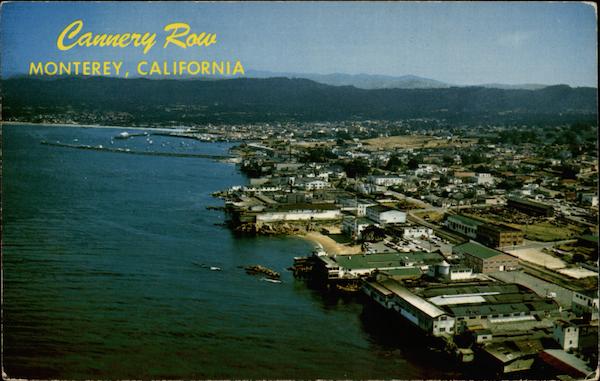 Front: Cannery Row MONTEREY, CALIFORNIA Back: An aerial showing famed Cannery Row on Monterey Bay. Distributed by Bell Magazine Agency, Monterey, Calif. 93940 COLOR BY MIKE ROBERTS BERKELEY, CALIF. 94710 C18246