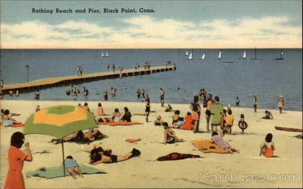 Front: Bathing Beach and Pier, Black Point, Conn. Back: 750 "TICHNOR QUALITY VIEWS" REG. U. S. PAT. OFF. MADE ONLY BY TICHNOR BROS., INC., BOSTON, MASS. 77901 NEW LONDON, CONN. THE NEW LONDON NEWS CO.,
