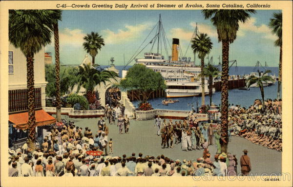 C-45-Crowds Greeting Daily Arrival of Steamer at Avalon, Santa Catalina, California