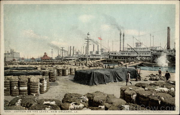 Front: 5821 COTTON ON THE LEVEE, NEW ORLEANS, LA. COPR DETROIT PHOTOGRAPHIC CO. Back: "PHOSTINT" TRADE MARK HEG US. PAT OFF MADE ONLY BY DETROIT PUBLISHING CO. THIS SPACE MAY BE USED FOR MESSAGE. XVIII THIS SPACE FOR THE ADDRESS