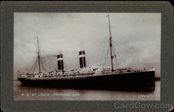 Front: S.S.ST LOUIS-AMERICAN LINE. DO ( Copyright.) Back: THIS SPACE CAN BE USED FOR CORRESPONDENCE IN THE UNITED KINGDOM AND MOST. FOR 800 WRIT HERE.