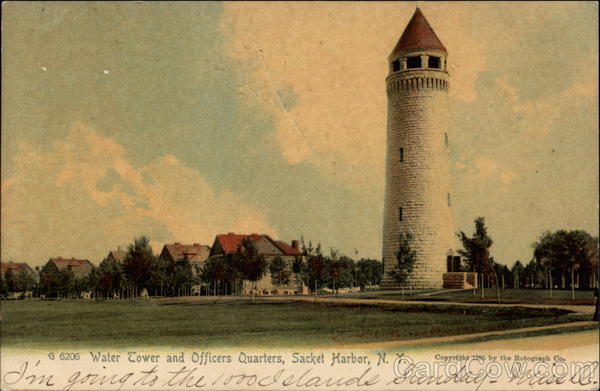 G 6206 Water Tower and Officers Quarters, Sacket Harbor, N. Y., Copyright 1965 by the Rotograph Co.