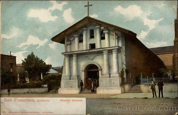 Front: San Francisco, California. Mission Dolores. 114 Charles Weidner, Pholographer, San Francisco Printed In Germany. Back: Place Stamp Here. 1ยข to United States Canada or Mexico 24 to all other Countries. THIS SIDE IS FOR ADDRESS ONLY.