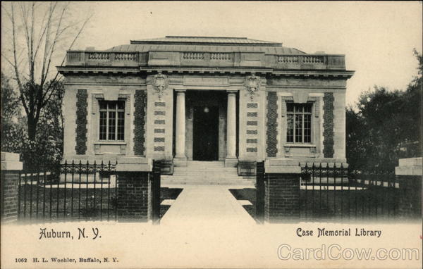 Front: Auburn, N. Y. 1062 H. L. Woehler, Buffalo, N. Y. CASE ME Case Memorial Library Back: H. L. W. B., N. Y. 2- POST CARD