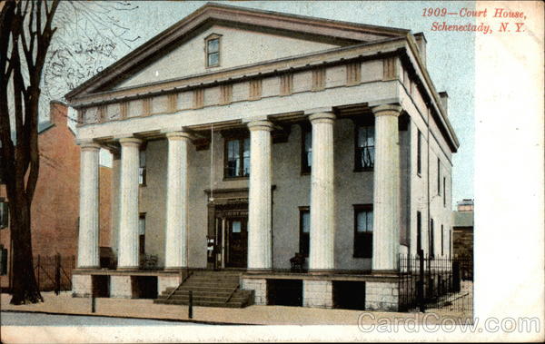 Front: COURT HO 1909 Court House, Schenectady, N. Y Back: 300 AU em CHENECTARO TADY APR28 08 NY UNITED STATES OF 1706 FAMILY 1790 AGE un in Gemnity Jainfart ny Hon do Duarthes all of Souvenir Post Card Co New York and Berlin.