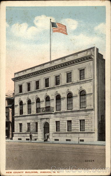 Front: NEW COUNTY BUILDING, JAMAICA, N. Y. 221024 Back: The Valentine-Souvenir Co., New York. Printed in U. S. A. THROUGHOUT FAMOUS SUPERIOR QUALITY THE WORLD Address Only