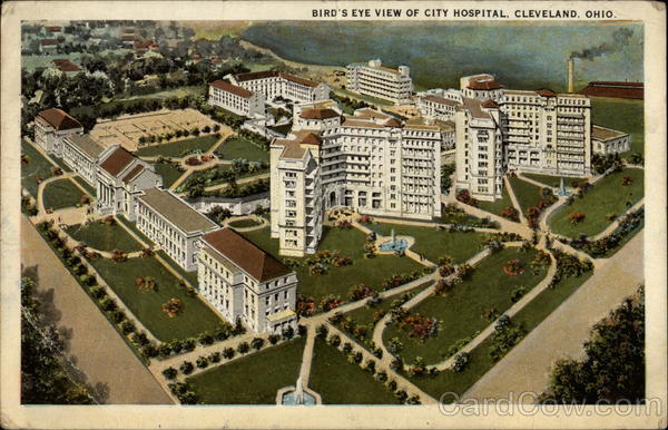 BIRD'S EYE VIEW OF CITY HOSPITAL, CLEVELAND, OHIO.