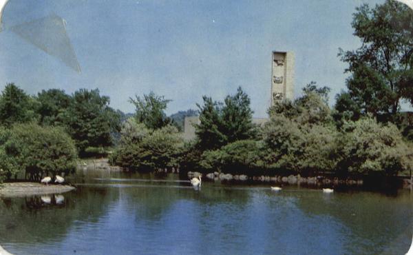 Water Fowl Sanctuary with new Bird House in background, Cleveland Zoological Park, Brookside Park Cleveland, Ohio.