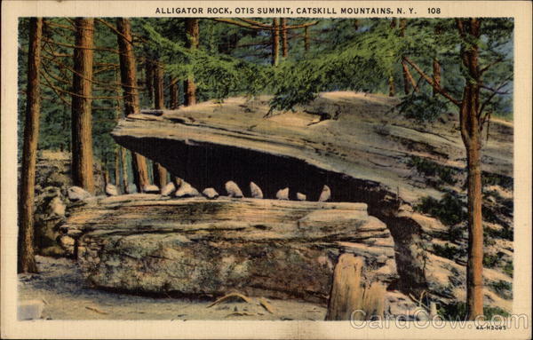 Front: ALLIGATOR ROCK, OTIS SUMMIT, CATSKILL MOUNTAINS, N. Y. 108 4A-H2065 Back: 'C.T. ART-COLORTONE REG.U.S. PAT. OFF. MADE ONLY BY CURT TEICH & CO., INC., CHICAGO C. W. HUGHES & CO., INC., MECHANICVILLE, N. Y.