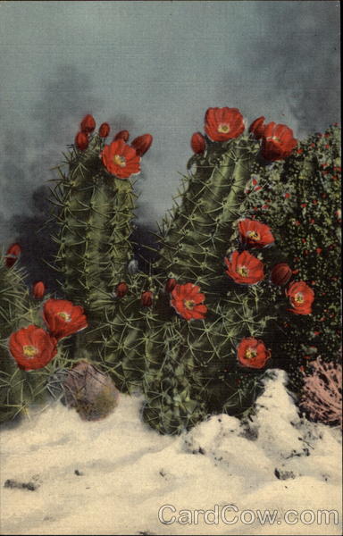 281-WHITE SANDS CACTUS This beautifully brilliant species of Cacti is found growing in the White Sands region, and the contrast is particularly marked as it gives the impression it is blooming in snow. 2B-H623