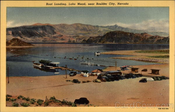 Lake Mead, the world's largest man-made body of water, created by Hoover (Boulder) Dam, affords year 'round fishing and scenic boating. From these Lake Mead Boating Company and Park Service docks, daily scenic trips depart for Boulder and Grand Canyon lake trips