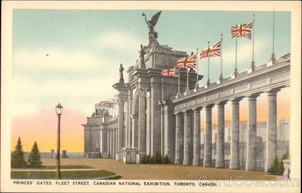 Front: RSHO PRINCES' GATES, FLEET STREET, CANADIAN NATIONAL EXHIBITION, TORONTO, CANADA Back: BOND STREET T. 21 Copyrighted. Published by Valentine-Black Co. Ltd., Toronto, Canada