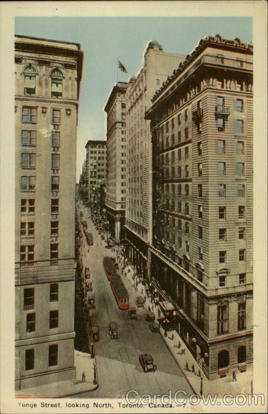 Front: Av 1 ... Umuy AL Yonge Street, looking North, Toronto, Canada,-7.1 Back: 3o MADE IN CANADA PHOTOGELATINE ENGRAVING CO LIMITED. OTTAWA 2.1 со OTTAWA