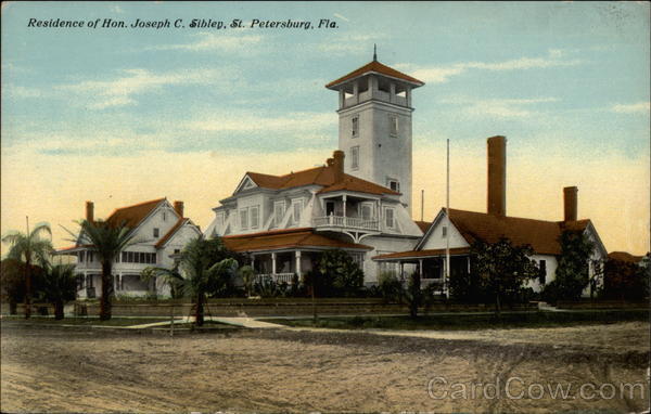 Front: Residence of Hon. Joseph C. Sibley, St. Petersburg, Fla. Back: (15) 2,50 DOST 110 COPYRIGHTED & PUBLISHED BY THE ST. PETERSBURG POST CARD ASS'N., ST. PETERSBURG, FLA, A-11866