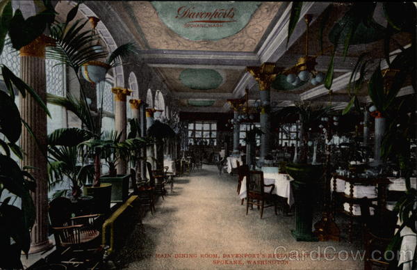 Front: Davenpoils SPOKANE,WASH. A7 MAIN DINING ROOM, DAVENPORT'S RESTAURANT, BEST IN THE SPOKANE, WASHINGTON Back: MADE IN AMERICA BY EDW. X. MITCHELL AT SAN FRANCISCO