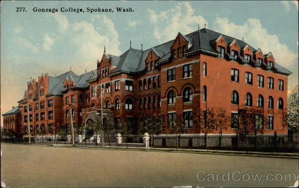 Front: 277. Gonzaga College, Spokane, Wash. 丑丑 Back: (۱) PUBLISHED BY SPOKANE POST CARD CO., SPOKANE, WASH. MADE IN U. S. A. R-19275