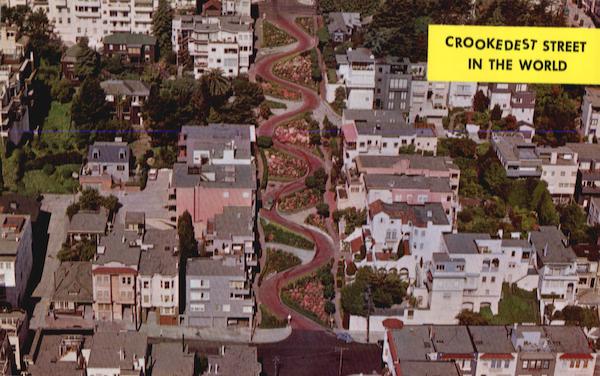 Lombard Street, San Francisco, between Leaven worth and Hyde, popularly known as "The Crookedest Street in the World."