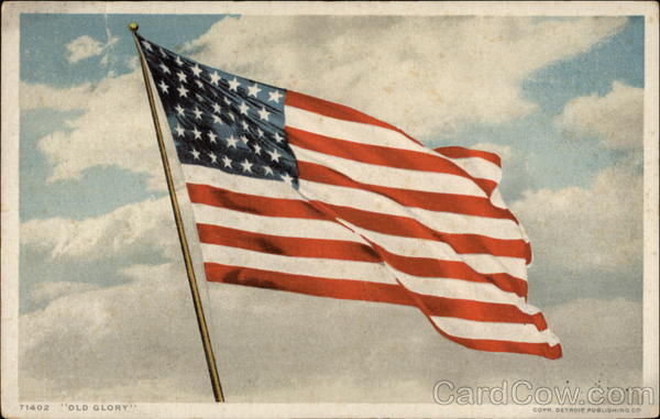 Front: 71402 "OLD GLORY COPR. DETROIT PUBLISHING CO. Back: PHOSTINT" TRADEMARK REGUS PAT OFF MADE ONLY BY DETROIT PUBLISHING CO FOREIGN TWO THIS SPACE MAY BE USED FOR MESSAGE.