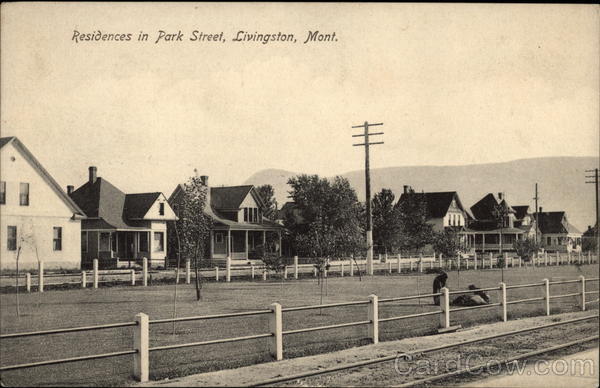 Front: Residences in Park Street, Livingston, Mont. Back: No. 510. Published by Scheuber Drug Co., Livingston, Mont. Made in Germany, dha 07 19543