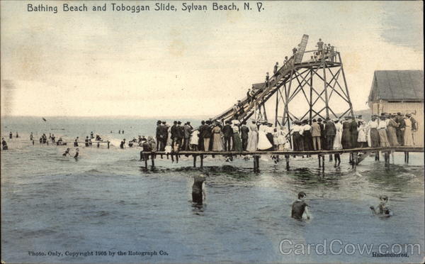 Front: Bathing Beach and Toboggan Slide, Sylvan Beach, N. D. it Photo. Only, Copyright 1905 by the Rotograph Co. Handcolored. Back: ST ARD 22 9AM tu han i au Mildred his S. Rockwell 8 Madeam st с Colland بع THE ROTOGRAPH Co.N.Y. CITY 55487 hay