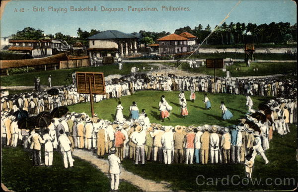 Front: A 42 Girls Playing Basketball, Dagupan, Pangasinan, Philippines. Back: Uma THE SPACE BELOW MAY BE USED U. S. & ISLAND 2 cTvos. SPACE ABOVE RESERVED FOR POSTMARKS 4 CTVOS. SS