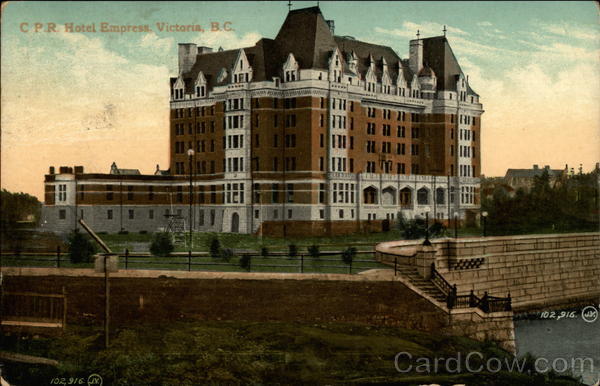 Front: C PR Hotel Empress. Victoria, B.C. 191 4um 102,916. (J. T02,916. (JV.) Back: The Valentine & Sons' Publishing Co., Ltd. Montreal and Toronto SOUVENIR POST GARD Caseldell Mr. R. M. Gott 79-14 Tusa