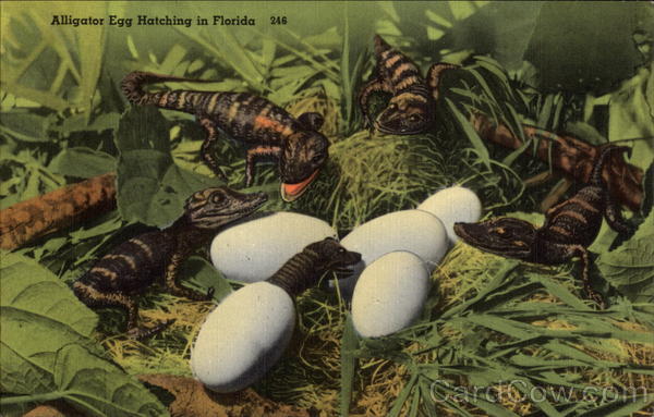 Front: Alligator Egg Hatching in Florida 246 Back: 72474 DOST CARD "TICHNOR QUALITY VIEWS" REG. U. S. PAT, OFF. MADE ONLY BY TICHNOR BROS., INC., BOSTON, MASS.