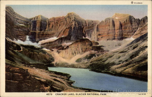 Front: © HILEMAN 4073 CRACKER LAKE, GLACIER NATIONAL PARK 5A-H192 Back: DHP 10 GLACIER PARK HOTEL CO. C. T. ART.COLORTONE