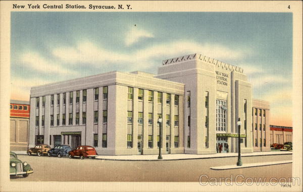 Front: New York Central Station, Syracuse, N. Y. NEW YORK CENTRAL STATION 73076 Back: The New York Central Railroad Station at Syracuse is one of the most modern and completely up-to-date in the country. It was opened to the public in 1936. EWIZOR
