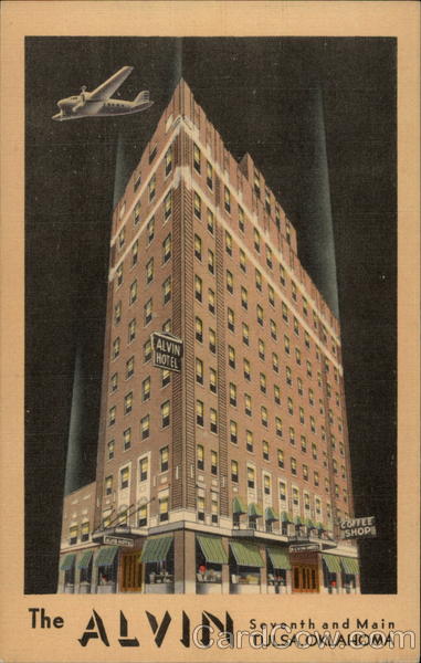 Front: ALVIN HOT EL COFFEE SHOP CDN HOTEL ALVIN HOTE ALVIN Seventh and Main TULSA, OKLAHOMA Back: A-2683 Publ. by Oklahoma News Co., Tulsa, Okla.
