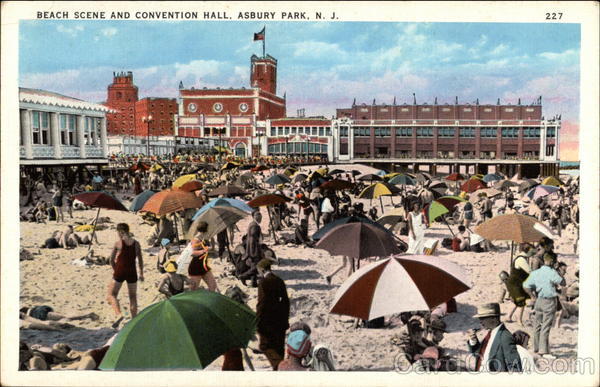 BEACH SCENE AND CONVENTION HALL, ASBURY PARK, N. J. 227