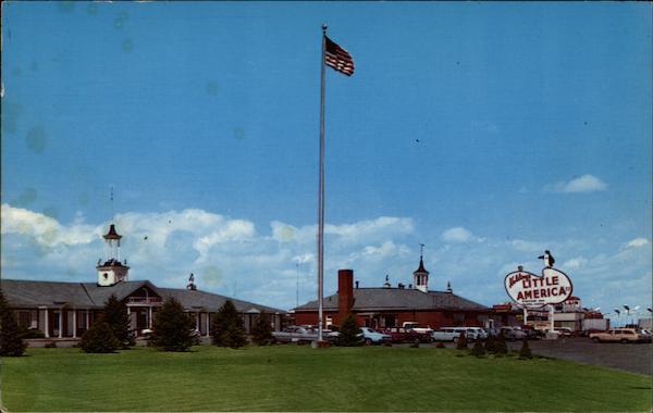 | America's New Travel Center, 300-capacity Coffee Shop and Dining Room, 150 Air Conditioned Motor Lodge Rooms, Fountains, Cocktail Lounge, Deluxe Rest Rooms. World's Largest Service Stations - 55 Pumps, Garage, Giant Paved Parking Areas. FAMOUS COAST TO COAST |