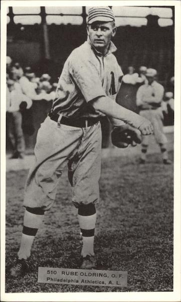 Front: 510 RUBE OLDRING, O. F. Philadelphia Athletics, A. L. Back: 1910 World Champions 1911 World Champions 1913 World Champions 1914 American League Champions MERE ST Box 2, Amawalk, N.Y. 10501 TCMA, LTD., 1974 TCMA Reprint