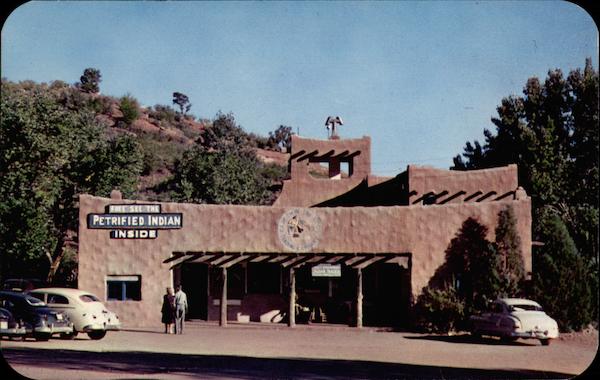 Front: FREE SEE THE PETRIFIED INDIAN INSIDE KOMPAR CAR TANN Back: #3551 Strausenback's Garden of the Gods Trading Post, Colorado Springs, Colorado. Calo Pub. by Sanborn Souvenir Co., Inc., Denver, Colorado ADI. WET KYACK, #. 50026
