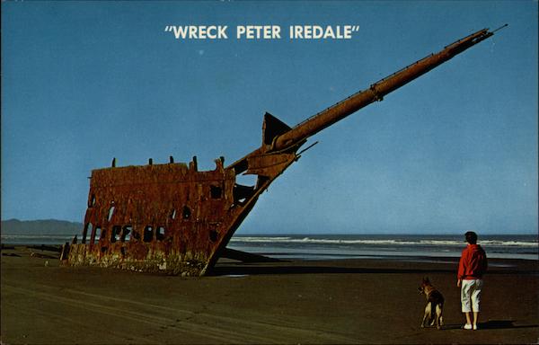 Front: "WRECK PETER IREDALE" LENE Back: K-2518 WRECK OF THE "PETER IREDALE" Beached in 1906 at the present location of Fort Stevens State Park, on the Oregon Coast. Pub. by Smith-Western Inc., 1133 N.W. Glisan St., Portland, Ore. 97209 S-43262-3