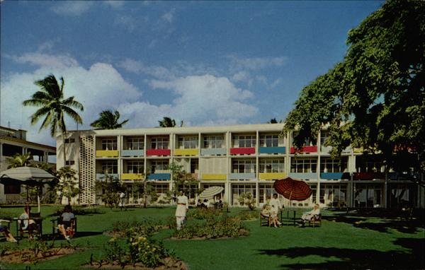 | Grand Pacific Hotel This hotel is owned by the Cathay Organization Visitors to Suva often relax in the tropical gardens of the Grand Pacific Hotel. A new wing completed on modern lines is fully air-conditioned, and from each room one is able to look out over the gardens to Suva Harbour and the mountain ranges beyond |