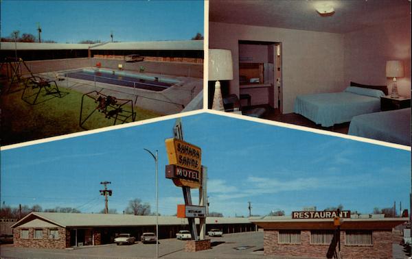 Sahara Sands Motel 315 East Hi-Way 66 Tucumcari, New Mexico Dial 461-0330 Wall-to-wall carpet - Tub-shower combination - TV - Thermostat Controlled Heat - Refrigerated air - King size beds - Baby beds - Playground - Restaurant - Heated pool - 32 units. Mr. & Mrs. M. M. Whittington Owners and operators Dexter Press, Inc |