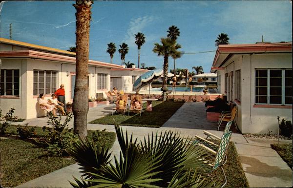 Golden Villa Apt. Motel (Overlooking Clearwater Bay) 225 Coronado Drive Clearwater Beach, Florida 33515 Beautifully furnished one, two, and three room apartments. Tile baths (tub and shower). All electric kitchens, air-conditioning, and heating. Quiet off-street garden and patio area. 100 yards to Gulf of Mexico white sand beach. Large swimming pool. Kenneth and Kathryn Davis, resident owners Telephone: 442-6962 |
