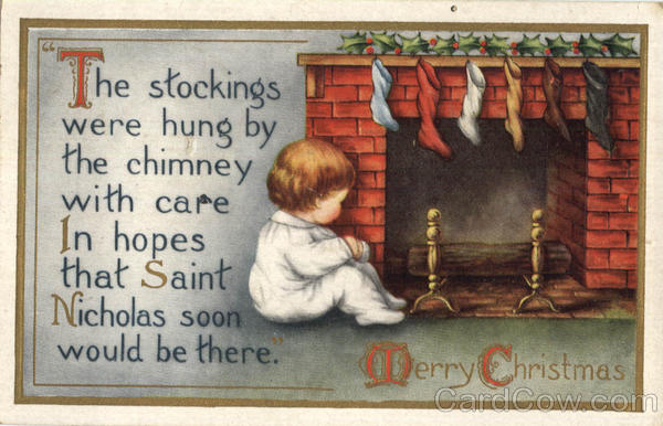 The Stockings were hung by the chimney with care. In hopes that Saint Nicholas soon would be there