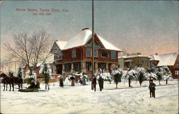 Front: Snow Scene, Santa Rosa, Cal. Jan, 6 th 1907. Back: DHY 38619 'ON M. Rieder, Publ., Los Angeles, Cal. No. 4696. Made in Germany.