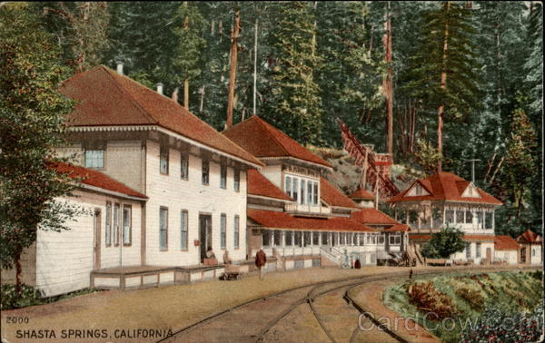 Front: 2000 SHASTA SPRINGS, CALIFORNIA. Back: $1¢ POSSESSIONS. CANADA, MEXICO, 2¢ "On the Road of a Thousand Wonders" PUBLISHED BY CARDINELL-VINCENT CO., SAN FRANCISCO. LOS ANGELES.