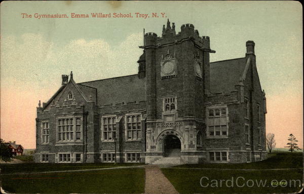 Front: The Gymnasium, Emma Willard School, Troy, N. Y. 213549 Back: Pub. by McGrane's, Troy, N. Y. THROUGHOUT TRADE MARK. Le QUALITY FAMOUS THE WORLD