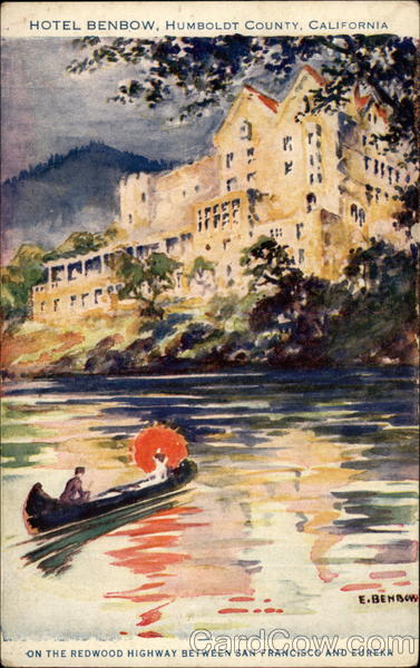 Front: HOTEL BENBOW, HUMBOLDT COUNTY, CALIFORNIA E.BENBOW ON THE REDWOOD HIGHWAY BETWEEN SAN FRANCISCO AND EUREKA Back: CARDU APOST