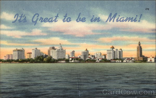 Front: 476 Its Great to be in Miami! **** Back: 2 or DHP “TICHNOR QUALITY VIEWS" REG. U. S. PAT. OFF. MADE ONLY BY TICHNOR BROS., INC., BOSTON, MASS. 79148