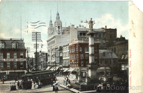 Front: ALL CLOTHING HOUSE Lancaster, Pa. Penn. Square. Back: 200 AM MONTPE STATES OF 17 FRANKLIN 190 POSTA Mrs Cumin Creatter This is a fine place Grunfield & Graphic its Pittsburg Pa