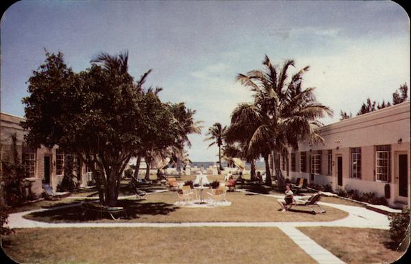 Open all year--private beach. 17 cozily furnished studio type efficiency apartments, each with private bath and kitchenette. Large Palm Court for sunbathing. Near everything--Away from the crowds. Moderate rates--day, week, month. Congenial, selected clientele. Mr and Mrs. Donald A. Cook, Resident owners Dextone |