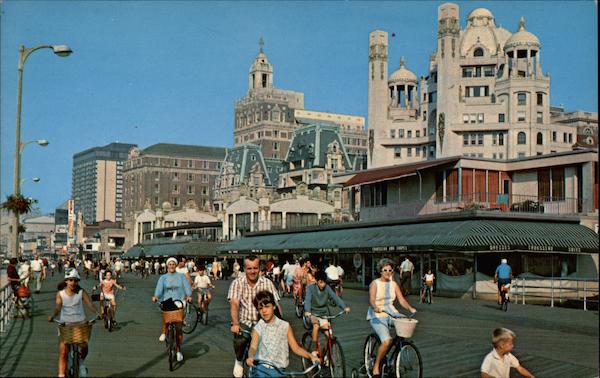 Front: IR DFENE ORESSES TROUSSERD SLIRS Back: ATLANTIC CITY, N.J. Bicycling on the Boardwalk. Juck Freeman Inc., 3207 Atlantic Ave., Longport, N. J. 102526
