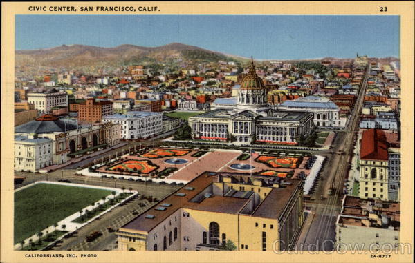 San Francisco's $20,000,000 Civic Center includes the City Hall, whose dome is higher than that of the National Capitol; the Public Library; the Civic Auditorium; the State Building; the War Memorial and Opera House, and the Health Center. The Civic Center is one of the finest in the world Pictorial Wonderland |