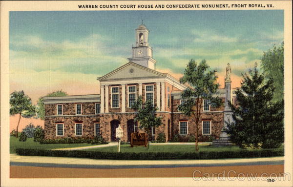 WARREN COUNTY COURT HOUSE AND CONFEDERATE MONUMENT, FRONT ROYAL, VA.