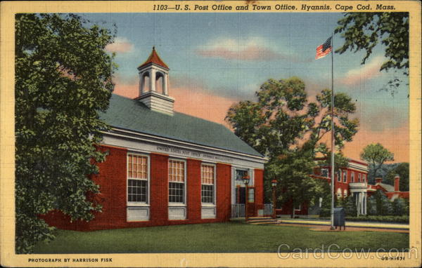1103-U. S. Post Office and Town Office. Hyannis. Cape Cod. Mass.